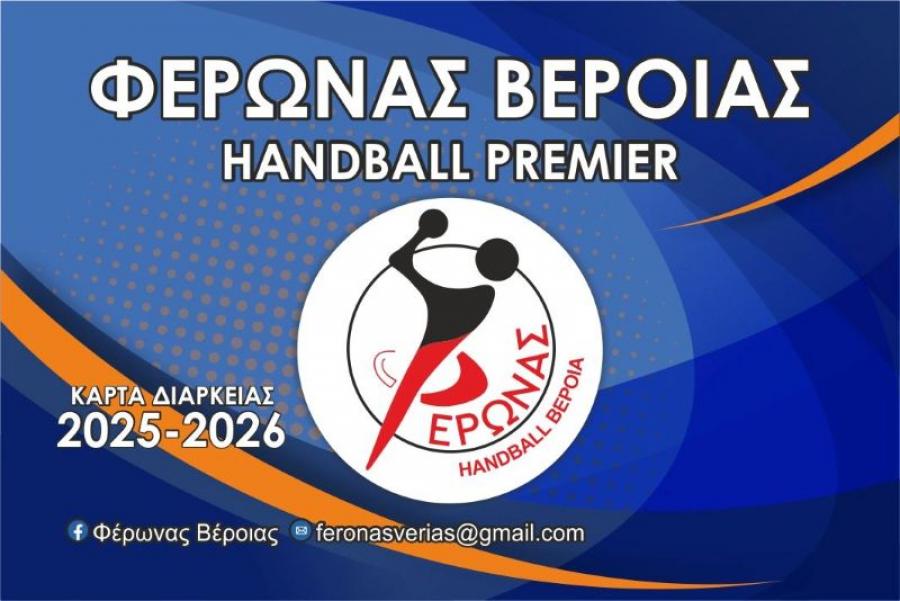 Καλούμε το φίλαθλο κοινό της πόλης, τους φίλους του Ηandball, και τους φίλους του Φέρωνα Βέροιας να συνδράμουν στην προσπάθεια μας στην Α1 Εθνική κατηγορία Ανδρών - Handball Premier, στηρίζοντας την με την απόκτηση ενός εισιτηρίου διαρκείας της αγωνιστικής περιόδου 2025-2026!