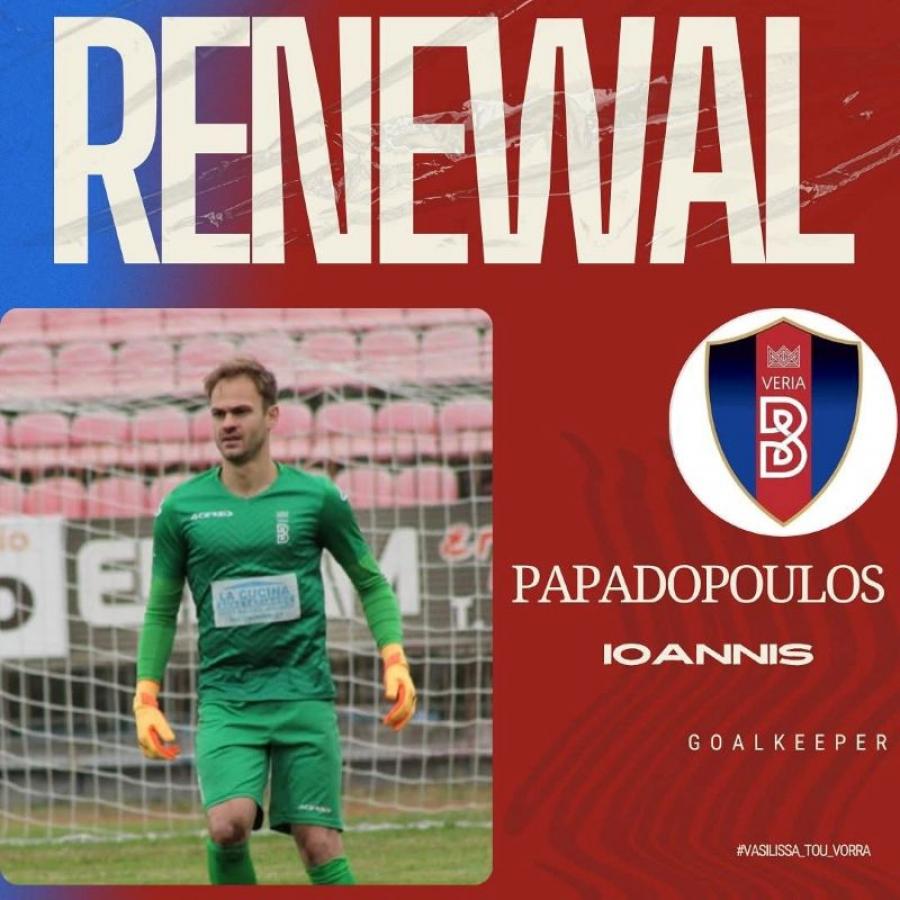 Για μία ακόμη χρονιά θα συνεχίσει να υπερασπίζεται την εστία της Βέροιας ο Γιάννης Παπαδόπουλος. Ο 26χρονος τερματοφύλακας τα «βρήκε» με την διοίκηση και ανανέωσαν την συνεργασία τους για μία ακόμη χρονιά. Έτσι μαζί με τον Δημήτρη Γκάρα θα αποτελέσουν ένα από τα καλύτερα ζευγάρια τερματοφυλάκων της κατηγορίας.