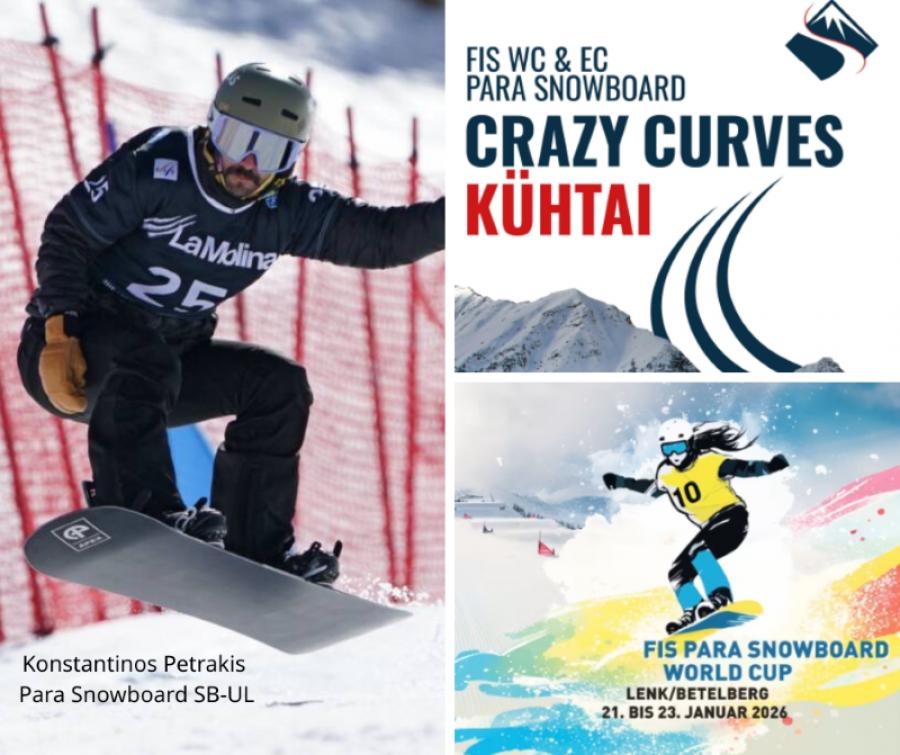 2026 FISPara Snowboard WC/EC, Lenk, SUI, 21–23/01: Μετά τις αγωνιστικές υποχρεώσεις στην Αυστρία, ο αθλητής μας θα μεταβεί στην πόλη Lenk της γειτονικής Ελβετίας. Εκεί το τριήμερο 21 ως 23 Ιανουαρίου, θα διεξαχθούν και πάλι αγώνες για το Ευρωπαϊκό και το Παγκόσμιο Κύπελλο, αυτή τη φορά στο αγώνισμα του Snowboard Cross.