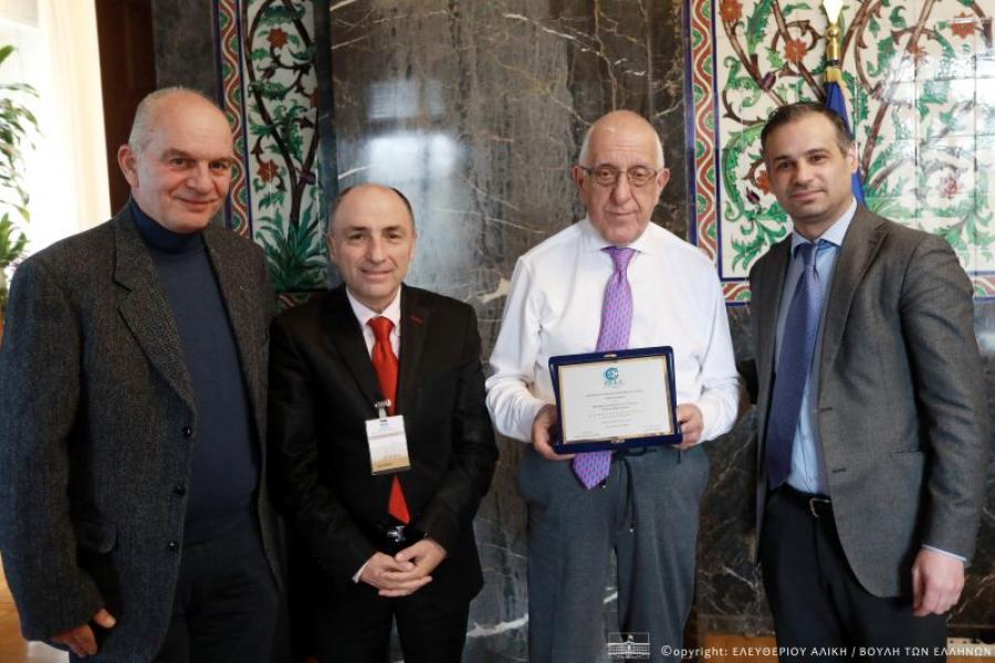 Στο πλαίσιο της συνάντησης οΠρόεδρος της Ε.Σ.Ε.Τ. κ. Γιώργος Κουλουράς, απένειμε τιμητική πλακέτα στον Πρόεδρο της Βουλής των Ελλήνων κ. Νικήτα Κακλαμάνη για την πολυσήμαντη και πολύχρονη προσφορά του στην Ελληνική Περιφέρειααπό όλες στις θέσεις που υπηρέτησε όλα αυτά τα χρόνια στην πολιτική του διαδρομή.
