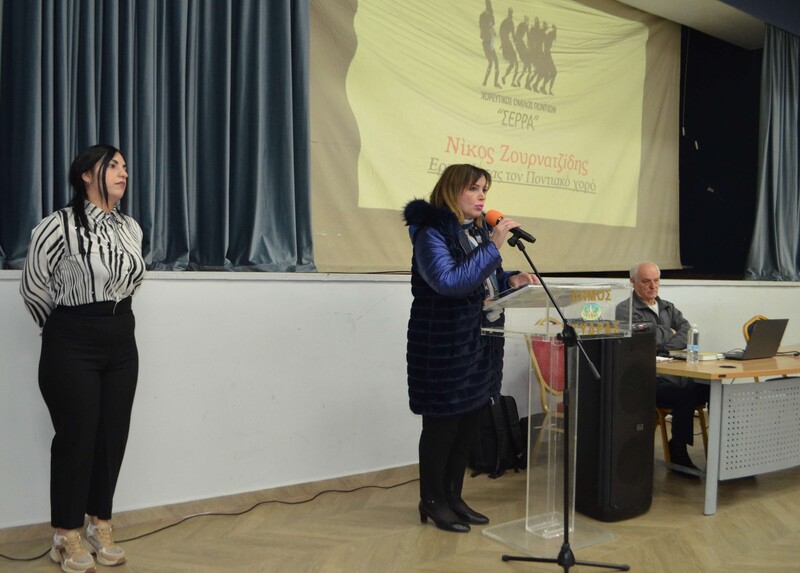 Τόνισε τη σημασία και το σκοπό της εκδήλωσης για την Ποντιακή παράδοση και τον πολιτισμό μας και εξέφρασε τις ευχαριστίες και τη χαρά της για την παρουσία του προσκεκλημένου ερευνητή – χοροδιδάσκαλου και συγγραφέα Νικόλαου Ζουρνατζίδη.