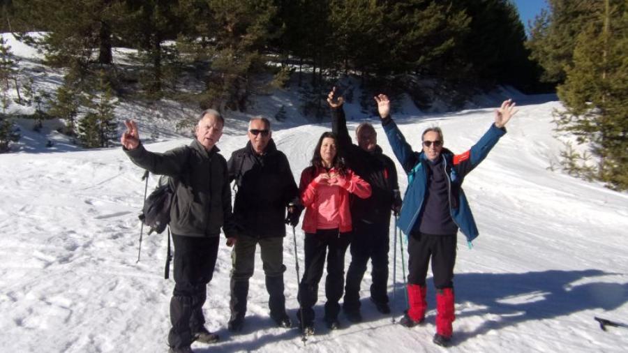 Με τον σάκο στον ώμο και τα απαραίτητα η πορεία αρχίζει. Οδοιπορούμε τώρα εμείς 6 ορειβάτες στο δασικό δρόμο που περιτριγυρίζει και αγκαλιάζει τις πίστες του χιονοδρομικού.