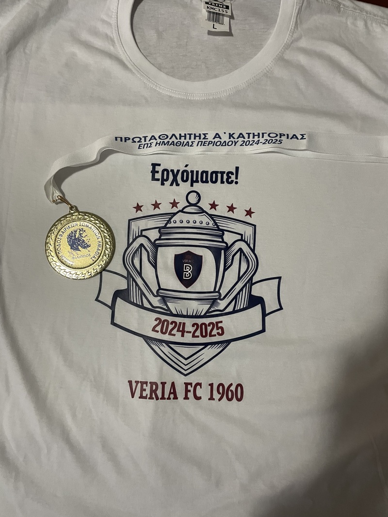 Την κατάκτηση του πρωταθλήματος της Α΄ κατηγορίας της ΕΠΣ Ημαθίας γιόρτασε σήμερα Σάββατο η ομάδα της Βέροιας. Αν και το τελικό αποτέλεσμα της ισοπαλίας 1-1 (Μπεκιαρίδης στο 46΄και Κούβαρος στο 87΄) με τον Φίλιππο Μελίκης, στα πλαίσια της τελευταίας αγωνιστικής και των πλέι οφ, που έγινε στο δημοτικό στάδιο Βέροιας με γηπεδούχο την ομάδα της Μελίκης, έφερε μια δυσφορία στις τάξεις της «βασίλισσας», όταν ήρθε η ώρα των απονομών όλα ξεχάστηκαν.
