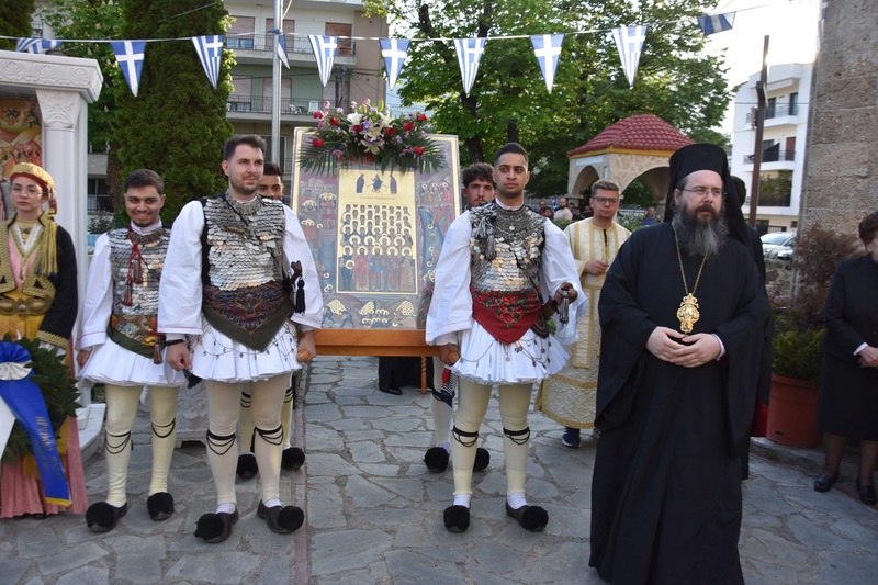 Το Σάββατο 26 Απριλίου, στις 18:00, ξεκίνησε από τον Χώρο Θυσίας η ιστορική πομπή μνήμης του Ολοκαυτώματος, με τη συμμετοχή πολιτιστικών συλλόγων του Δήμου Η.Π. Νάουσας, συλλόγων αναβιωτών και της Φιλαρμονικής Εταιρείας Νάουσας. Η πορεία διέσχισε σημεία ιστορικής σημασίας, όπως τον Άγιο Δημήτριο, τον «Στραβό» Πλάτανο, το Δημαρχείο και την Πλατεία Καρατάσου, για να καταλήξει στον Ιερό Ναό Αγίου Γεωργίου. Εκεί τελέστηκε Μέγας Πολυαρχιερατικός Πανηγυρικός Εσπερινός στη μνήμη των Αγίων Ναουσαίων Νεομαρτύρων και ακολούθησε πάνδημη λιτανεία της ιερής εικόνας τους έως τον Χώρο Μαρτυρίου («Κιόσκι»), όπου πραγματοποιήθηκε αρτοκλασία και εκφωνήθηκε εόρτιο κήρυγμα.