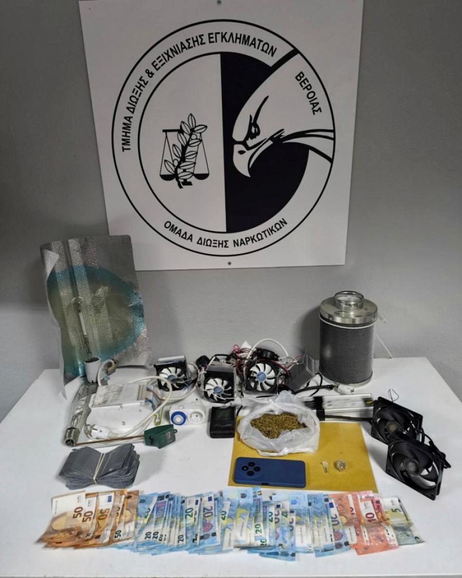 Επιπλέον βρέθηκε και κατασχέθηκε εξοπλισμός καλλιέργειας δενδρυλλίων κάνναβης (λαμπτήρες, μετασχηματιστής, ανεμιστήρες, σύστημα ψύξης-εξαερισμού κ.α.), καθώς και ένα κινητό τηλέφωνο.