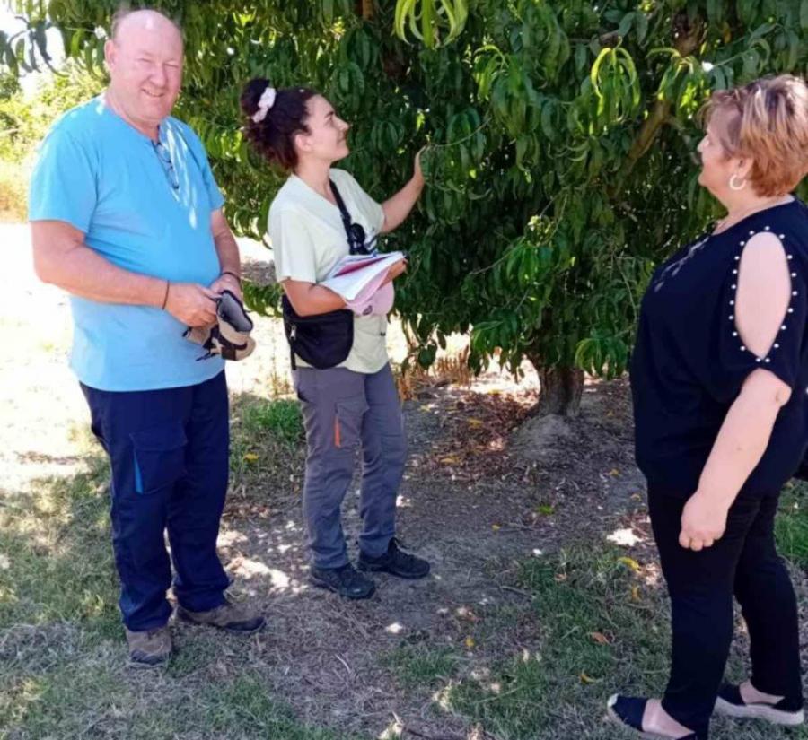 Συνοδευόμενη από γεωπόνους του ΕΛΓΑ, η κα Βασιλειάδου επισκέφθηκε καλλιεργημένες εκτάσεις της περιοχής για να παρακολουθήσει από κοντά τη διαδικασία των επιτόπιων εκτιμήσεων των ζημιών. Οι έλεγχοι που διενεργούνται από τους αρμόδιους γεωτεχνικούς αποσκοπούν στη λεπτομερή καταγραφή των επιπτώσεων του παγετού στην τοπική παραγωγή.
