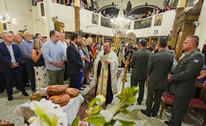 Μεγάλη συμμετοχή πιστών κατέκλυσε τον Ιερό Ναό Κοιμήσεως της Θεοτόκου, αποδεικνύοντας ότι ο εορτασμός του Οσίου Θεοφάνη παραμένει ζωντανός κρίκος που συνδέει τις γενιές της πόλης. Η κατάνυξη του Εσπερινού και η Ιερά Λιτανεία της Τιμίας Κάρας και της Ιεράς Εικόνος του Αγίου συγκίνησαν το εκκλησίασμα, παρά το γεγονός ότι οι δυσμενείς καιρικές συνθήκες ανάγκασαν την τελετή να πραγματοποιηθεί εντός του Ναού.
