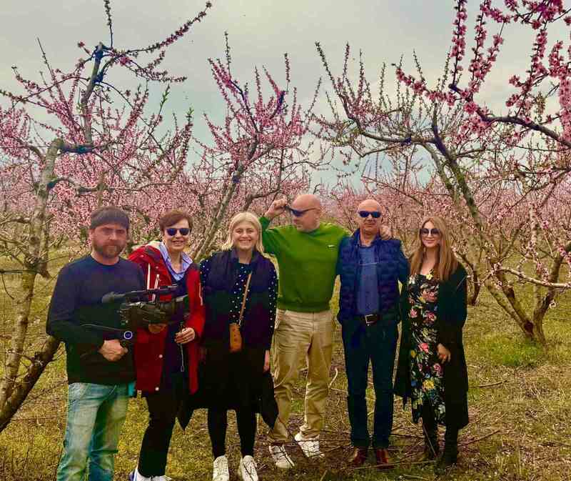 Γυρίσματα ανάμεσα σε ανθισμένες ροδακινιές τον Μάρτιο και εκ νέου τον Ιούνιο, για να παρουσιαστεί ο καρπός στο δέντρο, με τη στήριξη της Κοινοπραξίας Ομάδων Παραγωγών Ν. Ημαθίας.