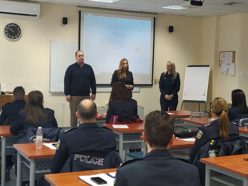 Επιπλέον απηύθυνε χαιρετισμό προς όλους τους εκπαιδευόμενους Αξιωματικούς του Τμήματος Επαγγελματικής Μετεκπαίδευσης Επιτελών Στελεχών της Σχολής καθώς και στο μόνιμο προσωπικό. Ευχαρίστησε την Διοικητή της Σχολής για την εκτεταμένη και άρτια ξενάγηση καθώς δε και για τη γόνιμη συζήτηση που είχαν πάνω σε θέματα που αφορούν την αξιοποίηση όλου του κεκτημένου της εκπαιδευτικής εμπειρίας, επ΄ωφελεία της Ελληνικής Αστυνομίας και κατ’ επέκταση της ελληνικής κοινωνίας.