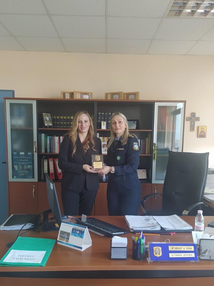 Κατά τη διάρκεια της παραμονής της στη Σχολή, η Διοικητής της Σχολής Αστυνομικός Διευθυντής κα Σοφία ΓΑΪΤΑΝΙΔΟΥ προσέφερε στην κα Έλενα ΣΩΚΟΥ αναμνηστική πλακέτα ως ενθύμιο της επίσκεψής της.