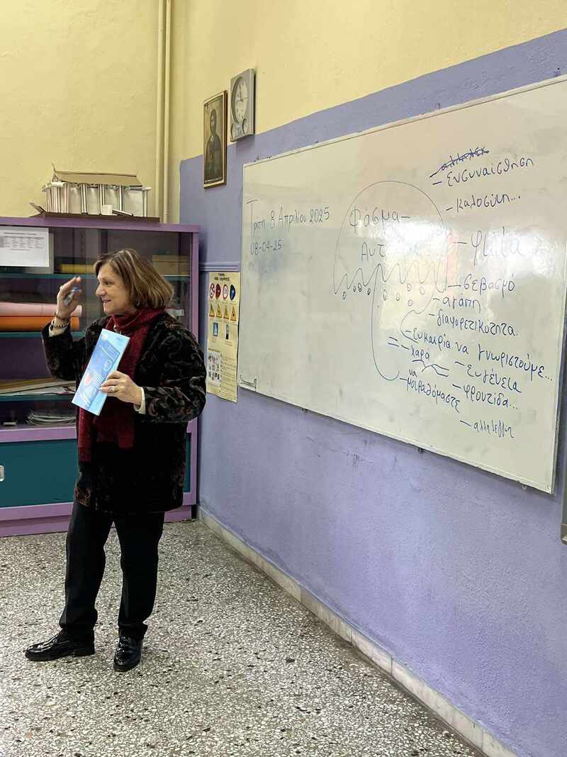 Η επίσκεψη του ιδρυτικού μας μέλους και σχολικής ψυχολόγου, Ειρήνης Αναγνώστου, αποτέλεσε μια μοναδική εμπειρία που άγγιξε βαθιά τις καρδιές των παιδιών και των εκπαιδευτικών. Με την αμεσότητα και τη ζεστασιά που τη διακρίνει, η κυρία Αναγνώστου παρουσίασε και διάβασε το παραμύθι της «Το Βάζο με τα μοναχικά μπισκοτάκια» — ένα παραμύθι αφιερωμένο στα άτομα στο φάσμα του αυτισμού, γραμμένο με αγάπη, τρυφερότητα και επιστημονική ευαισθησία.