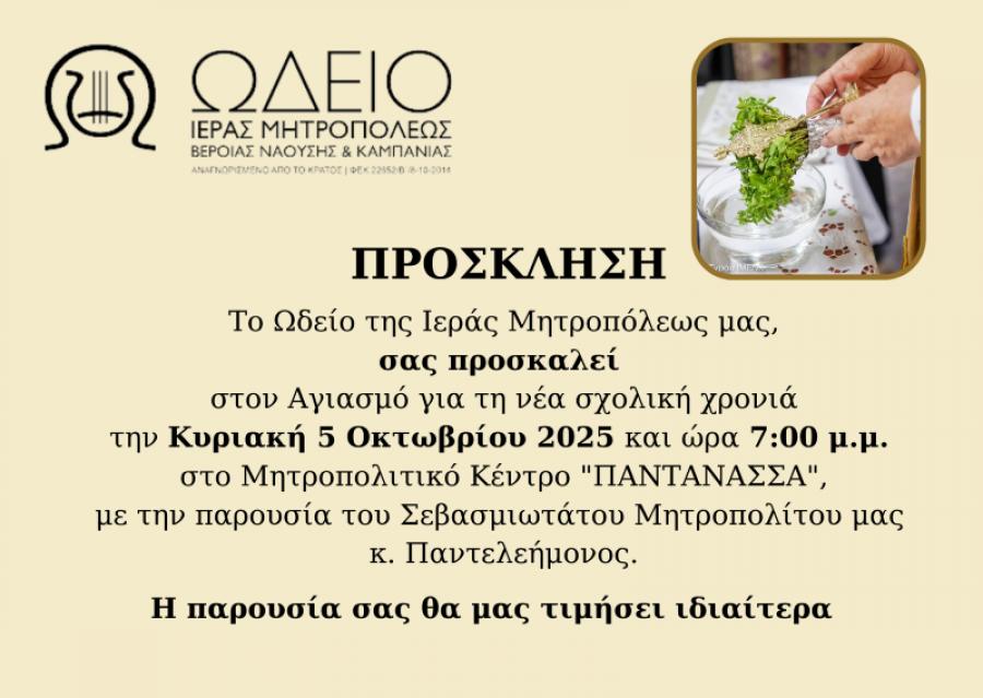 Την Κυριακή αγιασμός στο Ωδείο της Ιεράς Μητροπόλεως Βέροιας, Νάουσας και Καμπανίας