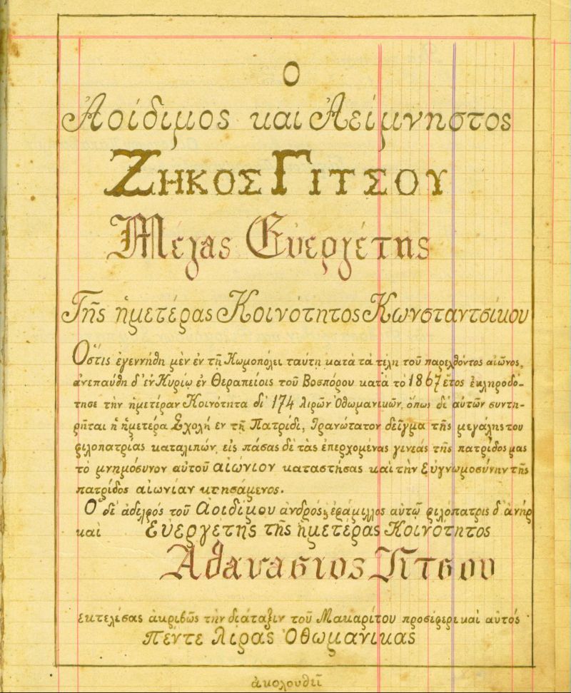 Αξίζει εδώ να προσθέσω πως πολλοί από τους Κωνσταντινουπολίτες παλαιότερων εποχών, αλλά και δικοί μας που πήγαν ως μετανάστες από τα μέσα του 19ου αιώνα, απέκτησαν μεγάλες περιουσίες πολλοί πρόσφεραν, κατά την ευαισθησία τους, την εθνική συνείδηση της εποχής, μεγάλα ποσά ως δωρεές για ιδρύματα ή για σχολεία εντός και εκτός Πόλης. Έτσι χτίστηκαν και λειτούργησαν το Ζωγράφειο το 1893, το περίφημο Γυμνάσιο Τσοτυλίου το 1871 και μετά (από τη Μακεδονική Φιλεκπαιδευτική Αδελφότητα, με έδρα την Κωνσταντινούπολη ως το 1924, στο ΔΣ της οποίας ήταν οι δύο παππούδες μου), πληρώνονταν τα λειτουργικά έξοδα σχολείων, εξασφαλίζονταν η πληρωμή δασκάλων σε πόλεις και χωριά (όπως στο δικό μου στο Βόιο, Κωνστάντσικο τότε, Αυγερινός από το 1928) και χρηματοδοτούνταν πλήθος άλλων δραστηριοτήτων ανθρωπιστικού και εθνικού περιεχομένου. Όλα αυτά, και πολλά άλλα ενδιαφέροντα στοιχεία, που αντανακλούν το πνεύμα αλληλεγγύης και την έμπρακτη αγάπη προς την πατρίδα περιέχονται σε "Κώδικα" και σε "Κατάστοιχον" που υπάρχουν (ένα μικρό δείγμα παρακάτω).