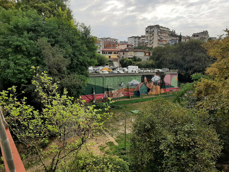 Μία εντυπωσιακή τοιχογραφία ολοκληρώθηκε σε τοίχο που βρίσκεται στην όχθη του ποταμού Τριποτάμου, πλησίον της πεζογέφυρας της οδού Θερμοπυλών (λαϊκή αγορά).