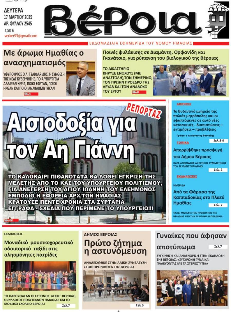 Διαβάστε σήμερα Δευτέρα στην εφημερίδα "Βέροια"