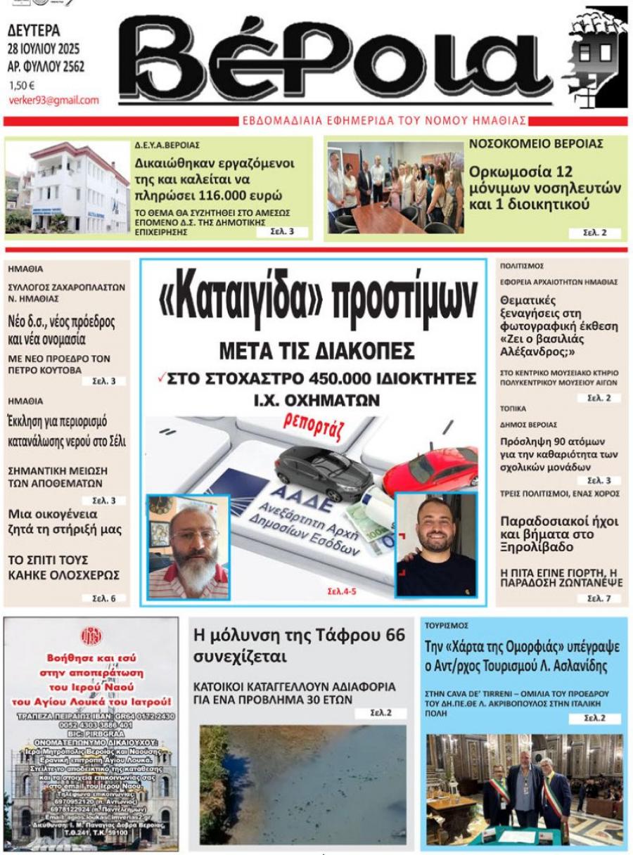 Διαβάστε σήμερα Δευτέρα στην εφημερίδα "Βέροια"
