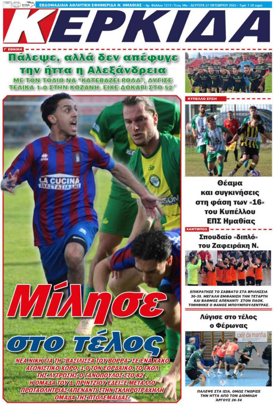 Διαβάστε σήμερα Δευτέρα στην εφημερίδα «Κερκίδα»