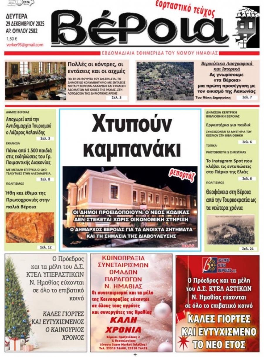 Διαβάστε σήμερα Δευτέρα στην εφημερίδα «Βέροια»