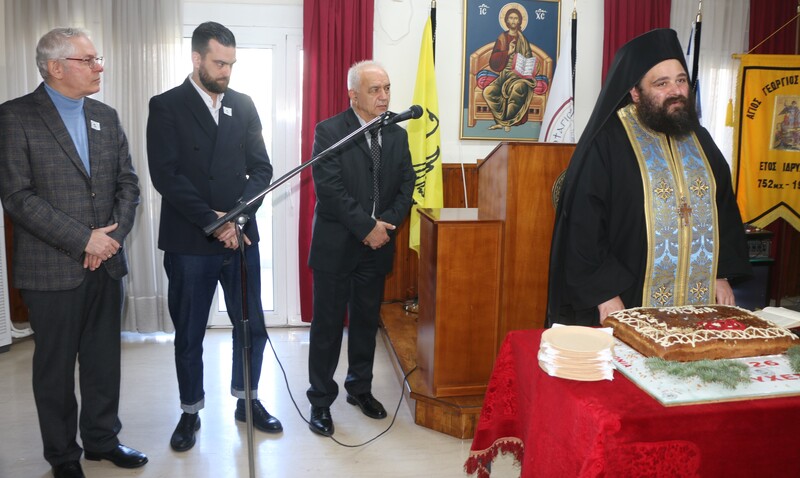 Στη συνέχεια ο Α’ Αντιπρόεδρος έκοψε και μοίρασε τα κομμάτια σε βουλευτές, επισήμους, εκπροσώπους φορέων και σωματεία. Ο τυχερός του κομματιού της βασιλόπιτας ήταν ο πανοσιολογιώτατος αρχιμ. π.Θεολόγος Σπυρίδης.