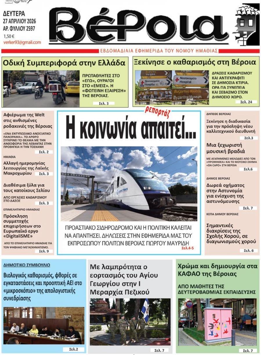 Διαβάστε σήμερα Δευτέρα στην εφημεριδα "Βέροια"