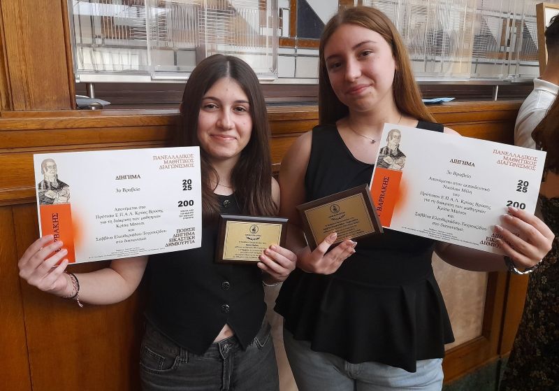 Με υπερηφάνεια και συγκίνηση, ο Σύλλογος Γονέων και Κηδεμόνων του ΠΕΠΑΛ Κρύας Βρύσης ανακοινώνει ότι πραγματοποιήθηκε την Παρασκευή 14 Μαρτίου 2025 η βράβευση των δύο μαθητριών μας, Μπότσι Κρίσα και Ελευθεριάδου-Τογρουζίδου Σαββίνα στην αίθουσα συνεδριάσεων της Τράπεζας της Ελλάδος, σε μια λαμπρή τελετή όπου έλαβαν την αναγνώριση για την κατάκτηση της 3ης θέσης σε εθνικό επίπεδο, τιμώντας το σχολείο μας και ολόκληρη την κοινότητα της Κρύας Βρύσης.