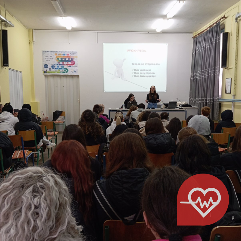 Η πρώτη δράση έγινε με αφορμή την παγκόσμια ημέρα για την ψυχική υγεία με τίτλο "Συζητάμε για τους δρόμους της ψυχής". Εισηγήτριες οι κκ. Ολυμπία Λαζαρίδου, κοινωνική λειτουργός, Έμυ Μήτσιου, ψυχολόγος. Με τη θέρμη τους και τις γνώσεις τους κατάφεραν να καταργήσουν την απόσταση μεταξύ μαθητών, καθηγητών και των ιδίων και έτσι να γίνει ουσιαστική συζήτηση για το τόσο σοβαρό θέμα της ψυχικής υγείας.