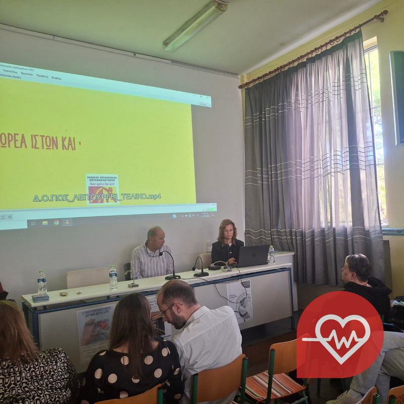 Τέλος, η τρίτη δράση είχε ως αφορμή την πανελλήνια μέρα δωρεάς οργάνων και μεταμοσχεύσεων. Ήταν συνδιοργάνωση του συλλόγου νεφροπαθών του ν. Ημαθίας και του 1ου ΕΠΑΛ- ΕΚ ΒΕΡΟΙΑΣ. Για τη δωρεά οργάνων μίλησε η συντονίστρια ΕΟΜ κ. Ζαχαρούδη Δήμητρα. Επίσης εισηγήσεις έκαναν οι ιατροί, νεφρολόγοι κ. Σπυρόπουλος Πέτρος και η κ. Ιντζεβίδου Ελένη. Με ιδιαίτερο ενδιαφέρον μαθητές και οι συνοδοί καθηγητές τους άκουσαν τα νέα δεδομένα για τα παραπάνω επιστημονικά αλλά και τόσο ζωτικά θέματα.
