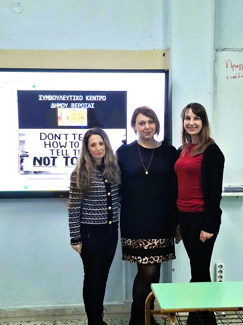 Την Παρασκευή 5 Δεκεμβρίου 2025 το Συμβουλευτικό Κέντρο Υποστήριξης Γυναικών του Δήμου Βέροιας πραγματοποίησε δράση ενημέρωσης και ευαισθητοποίησης, στους σπουδαστές του Γ’ εξαμήνου της ειδικότητας Στέλεχος Διατροφής και Διαιτολογίας, της Πειραματικής ΣΑΕΚ ΒΕΡΟΙΑΣ με στόχο την ενίσχυση της γνώσης και της κατανόησης γύρω από τα ζητήματα έμφυλης βίας και ισότητας των φύλων.