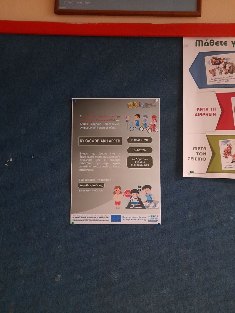 Δράση Ενημέρωσης για την κυκλοφοριακή αγωγή στο 2ο Δημοτικό Σχολείο Μακροχωρίου
