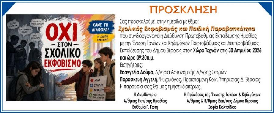 Ημερίδα στη Βέροια με θέμα "Σχολικός Εκφοβισμός και Παιδική Παραβατικότητα"