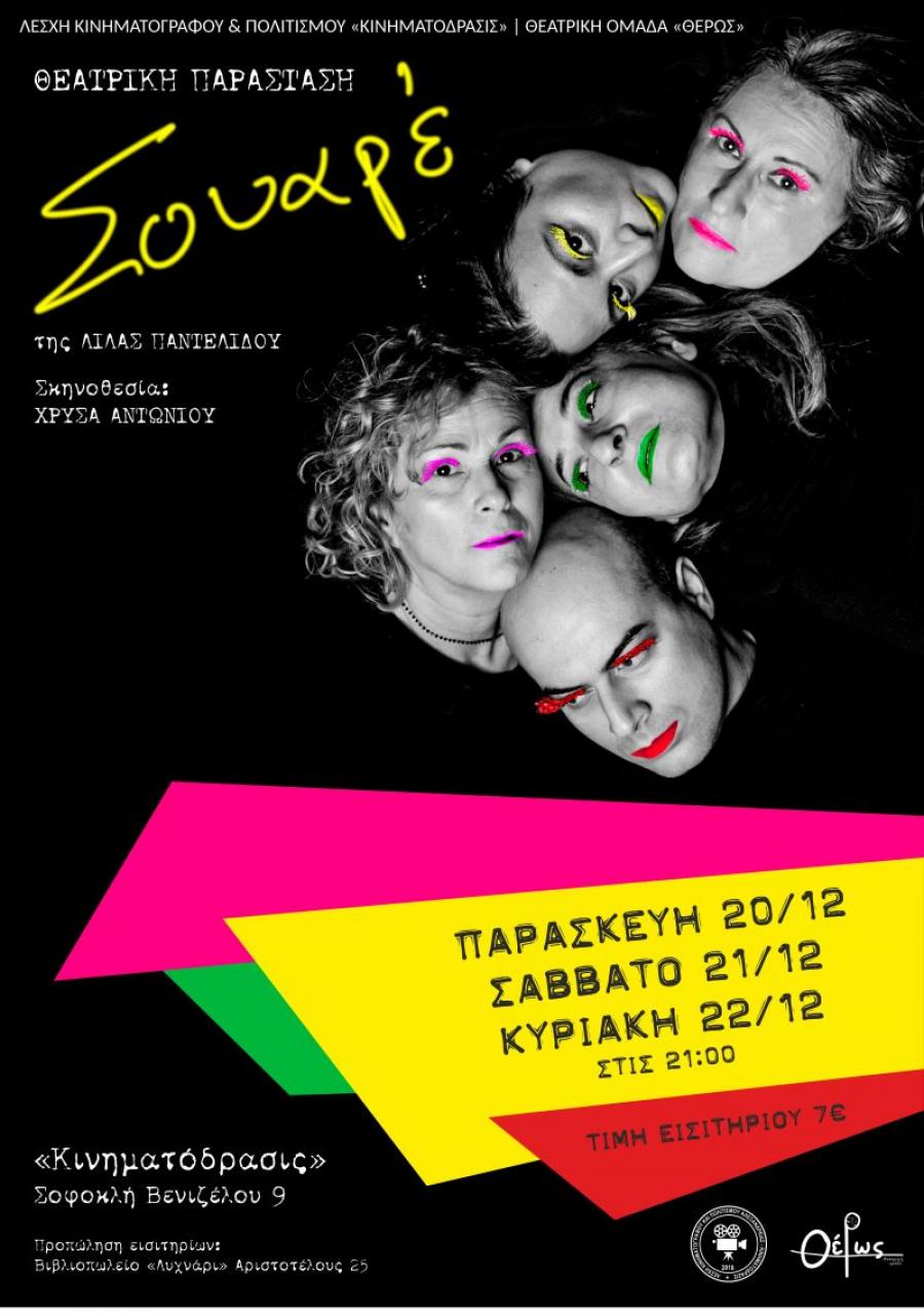 Η Θεατρική Ομάδα «Θέρως» της Λέσχης Κινηματογράφου και Πολιτισμού Κινηματόδρασις, παρουσιάζει τη Θεατρική Παράσταση “ΣΟΥΑΡΕ ’’ της Λίλας Παντελίδου.