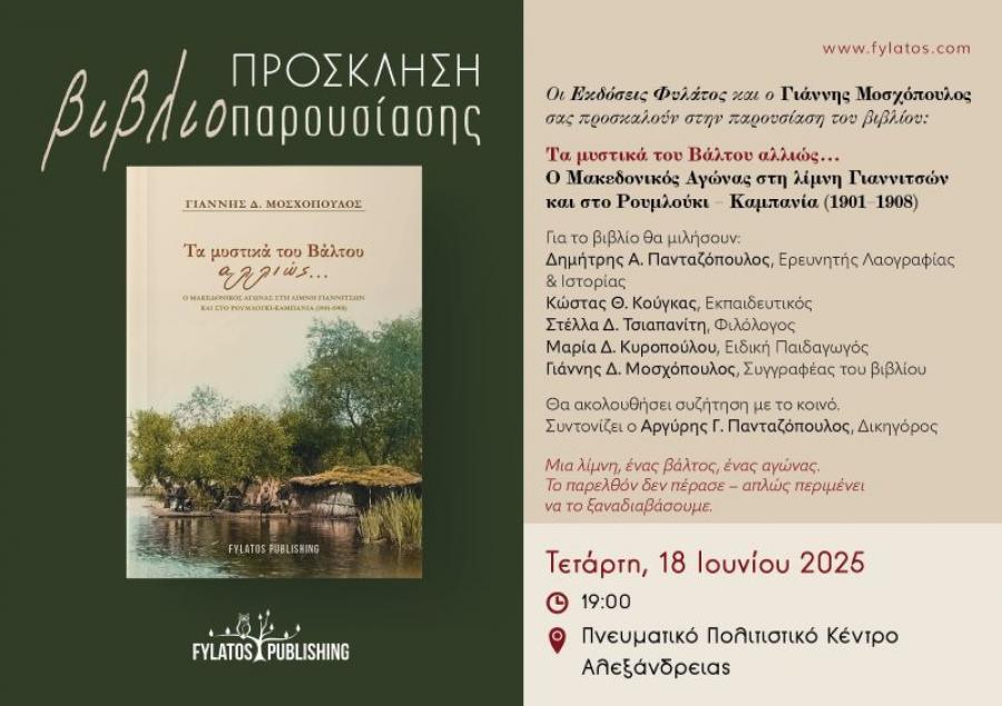 "Τα μυστικά του βάλτου αλλιώς..." / Παρουσίαση του νέου βιβλίου του Γιάννη Μοσχόπουλου