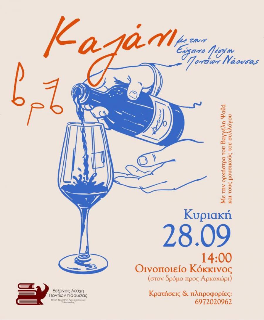 Η Εύξεινος Λέσχη Ποντίων Νάουσας σας προσκαλεί για ακόμη μία χρονιά στο καθιερωμένο Παραδοσιακό Γλέντι σε Καζάνι, την Κυριακή 28 Σεπτεμβρίου 2025, στο Οινοποιείο Κόκκινος.