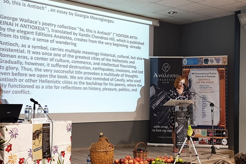Στα πλαίσια του 4ου Διεθνούς Φεστιβάλ Ποίησης Νάουσας και με την παρουσία πολλών Ελλήνων και ξένων ποιητών αλλά και φίλων της ποίησης, έγινε το περασμένο Σάββατο 27 Σεπτεμβρίου 2025, η παρουσίαση του δίγλωσσου βιβλίου του Νεοϋορκέζου ποιητή - καθηγητή Αγγλικής Φιλολογίας στο Pace University (N.Y.), George Wallace, «So This Is Antioch - Λοιπόν αυτή είναι η Αντιόχεια», που μόλις κυκλοφόρησε από τη σειρά «Μικρή Βιβλιοθήκη Ποίησης» των εκδόσεων Ανάλεκτο.