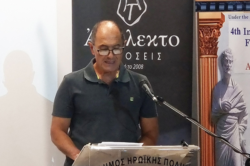 Παίρνοντας τον λόγο ο ποιητής αναφέρθηκε στις δημιουργικές του προθέσεις και στους συναισθηματικούς του δεσμούς με την Ελλάδα και τη Νάουσα, όπου γεννήθηκε η ποιητική του συλλογή, ενώ στάθηκε στη διαπίστωση ότι ο ποιητής επεξεργάζεται το υλικό του, εκφράζεται και ζει σε επίπεδο μεταφορικότητας και συμβολισμού. Τέλος, με πολλή εκφραστικότητα απήγγειλε ένα ποίημα της συλλογής του.