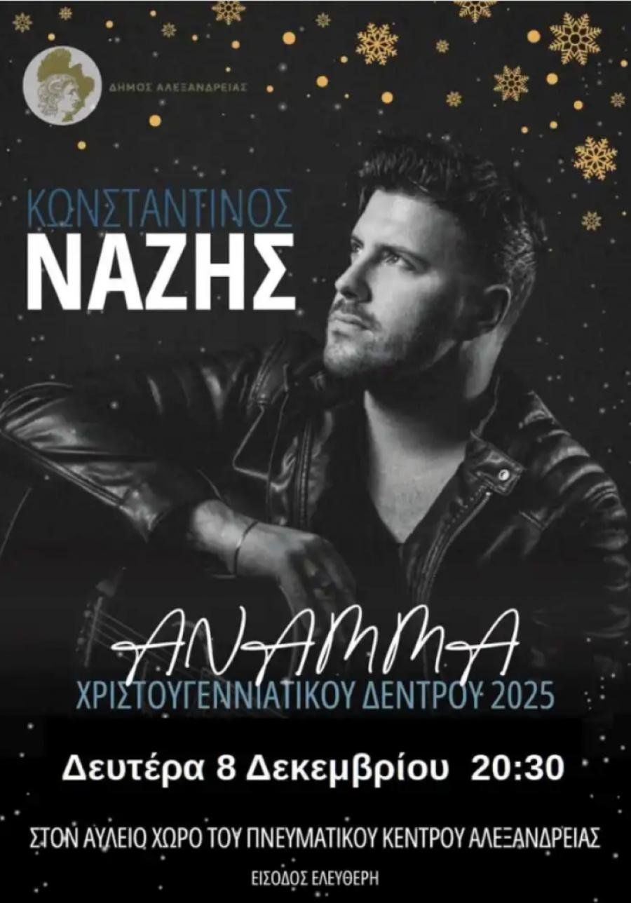Σας προσκαλούμε όλες και όλους απόψε Δευτέρα 8 Δεκεμβρίου στις 20:30 ώστε να εκκινήσουμε μαζί την εορταστική περίοδο στο Πνευματικό Κέντρο Αλεξάνδρειας, για να ανάψουμε για ακόμα μία φορά όλοι μαζί το Χριστουγεννιάτικο δέντρο μας!