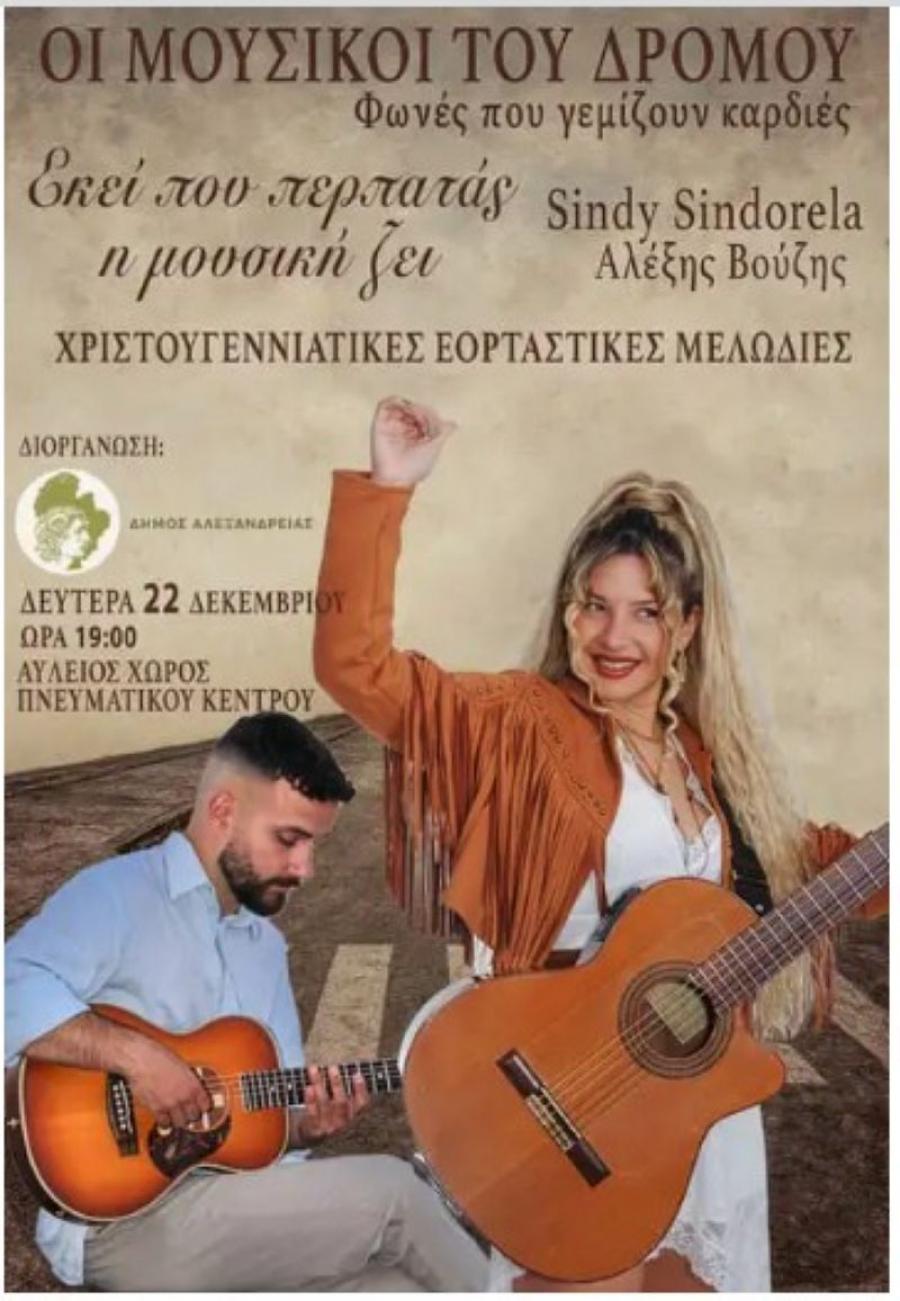 “Οι Μουσικοί του δρόμου”, με τη μοναδική Sindy Sindorela και τον Αλέξη Βούζη, φέρνουν στη σκηνή τη μαγεία της αυθεντικότητας, το συναίσθημα του δρόμου και τη δύναμη της ζωντανής φωνής μέσα από ένα εορταστικό πρόγραμμα διάρκειας τριών ωρών.