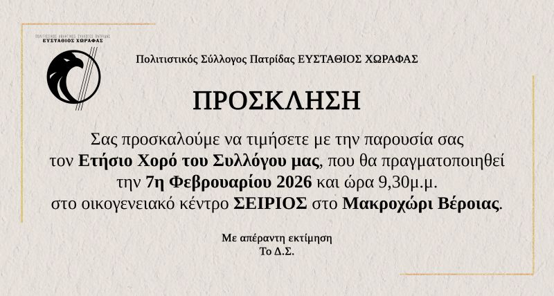 Ετήσιος χορός του Πολιτιστικού Συλλόγου Πατρίδας "Ευστάθιος Χωραφάς"