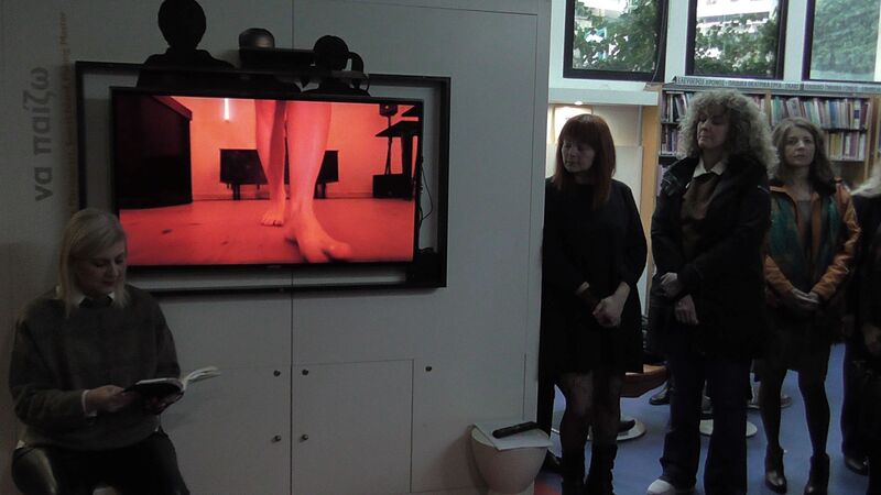 Το κοινό, αμέσως μετά μετέβη στην Αίθουσα του Δημοτικού Συμβουλίου, όπου παρακολούθησε το Videoτης Εικαστικού Άννης Καλτσίδου «Για μια χούφτα γης» ΄΄Foramorselofland΄΄. Ένα έργο βιντεοσκόπησης και επεξεργασίας μοντάζ του Χρήστου Βουλγαράκη, που φέρνει σε πρώτο πλάνο τις παιδικές πουέντ των κοριτσίστικων ονείρων και των πρώτων βημάτων στην ζωή και στον χορό, να βρίσκονται εξόριστες πια από τον αρχικό τους χώρο, δίπλα στο κύμα, ως παρατημένες απώλειες μιας αγωνιώδους διαδρομής. Μετά την προβολή, χαιρετισμό εκ μέρους του Δήμου Βέροιας, απεύθυνε οΑντιδήμαρχος Ηλεκτρονικής Διακυβέρνησης Καλλίστρατος Γρηγοριάδης.