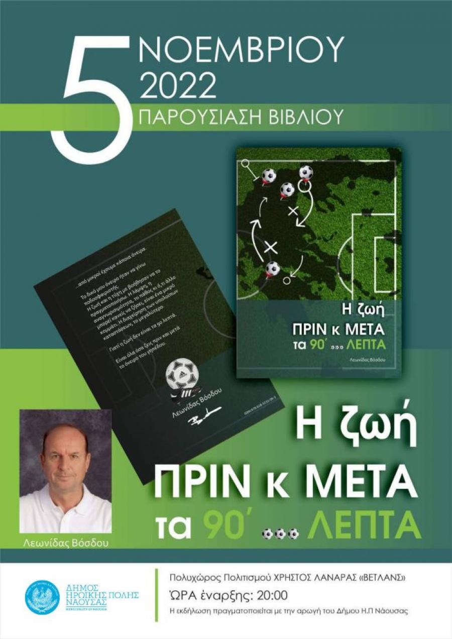 Για το βιβλίο θα μιλήσουν ο καθηγητής φυσικής αγωγής Χρήστος Τσιάτσιος και ο φιλόλογος Δημήτρης Τσίτσης.
