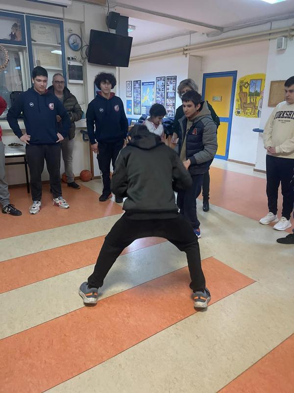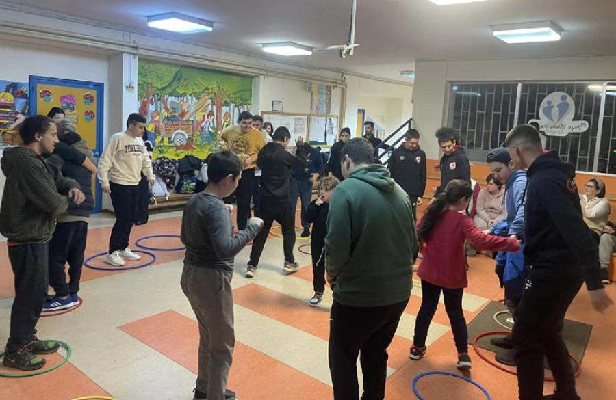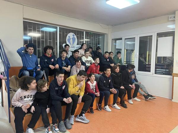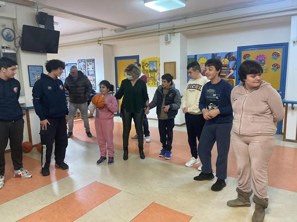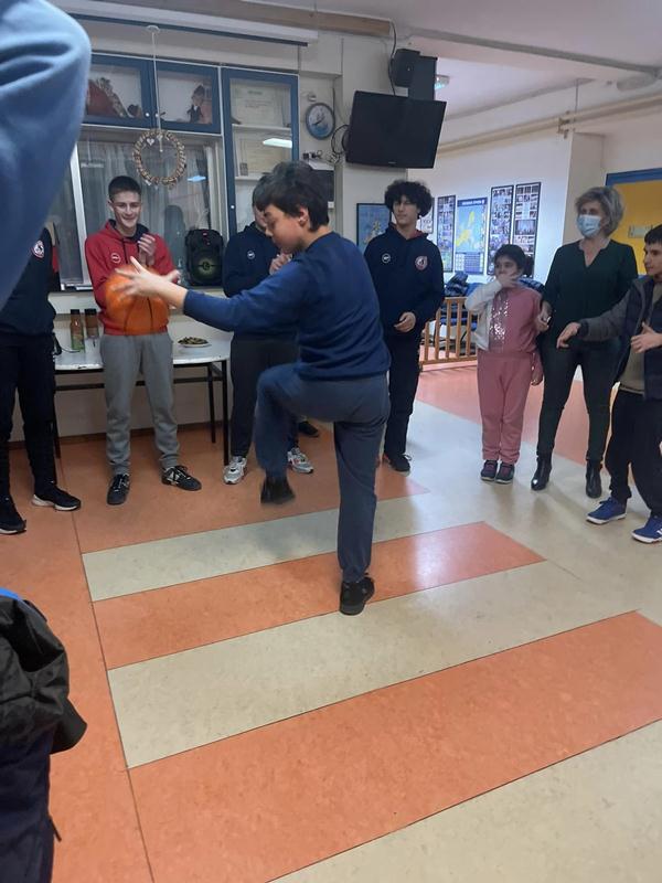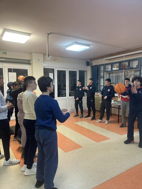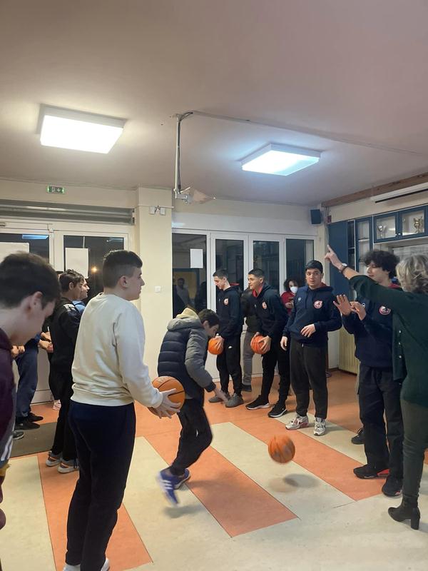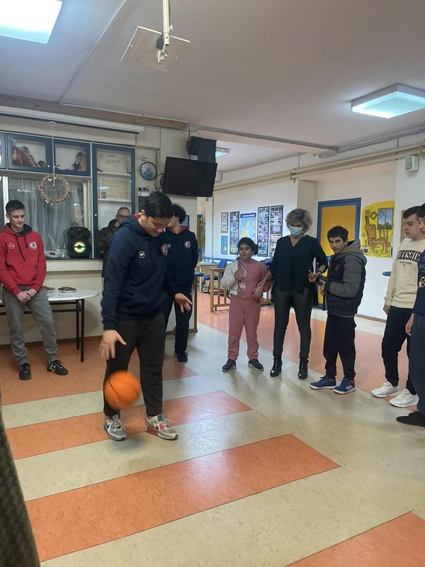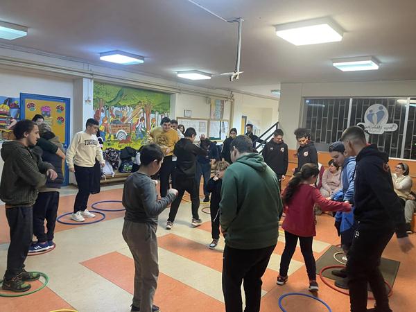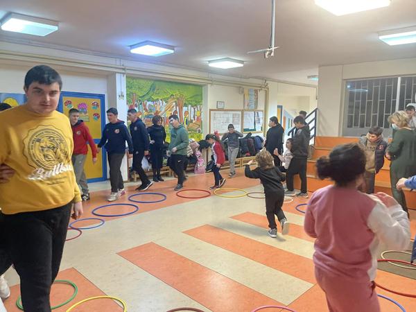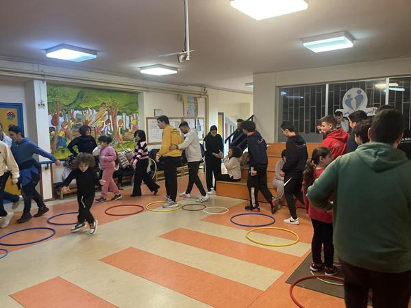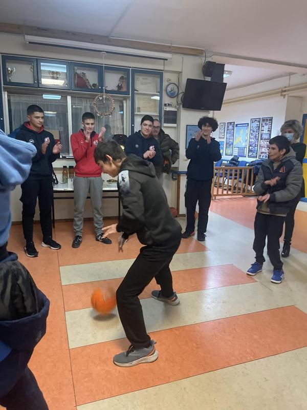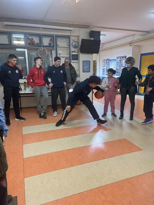Τα παιδιά του ΚΔΑΠ καλωσόρισαν θερμά τους νεαρούς παίκτες της ομάδας. Μετά τις πρώτες συστάσεις, τα παιδιά γίνανε μια μεγάλη παρέα και διασκεδάζανε μέσω διάφορων παιχνιδιών.