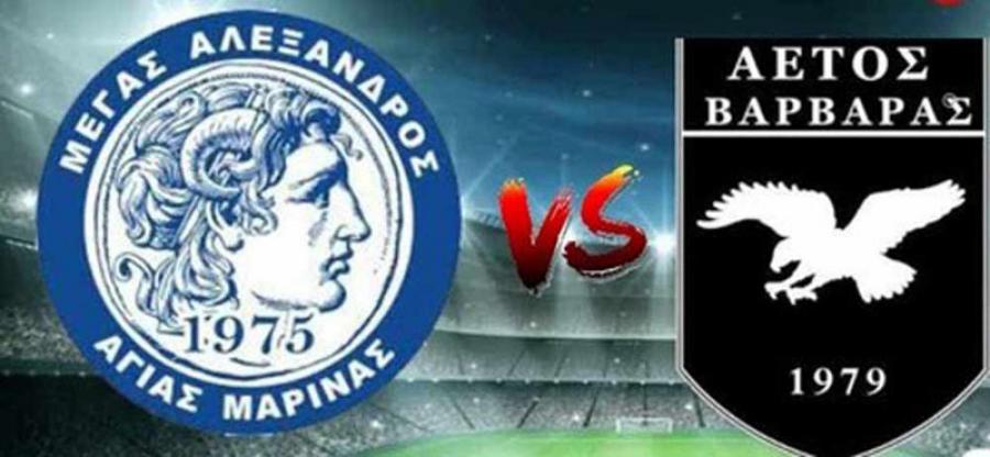 Τον Αετό Βαρβάρας (Χαλκιδικής) αντιμετωπίζει την Κυριακή ο Μέγας Αλέξανδρος Αγίας Μαρίνας, στα πλαίσια της 4ης αγωνιστικής των αγώνων μπαράζ για την άνοδο στην Γ΄ Εθνική. Η ομάδα της Ημαθίας θέλει μόνο τη νίκη που θα την καταστήσει αδιαφιλονίκητο φαβορί για το εισιτήριο ανόδου.