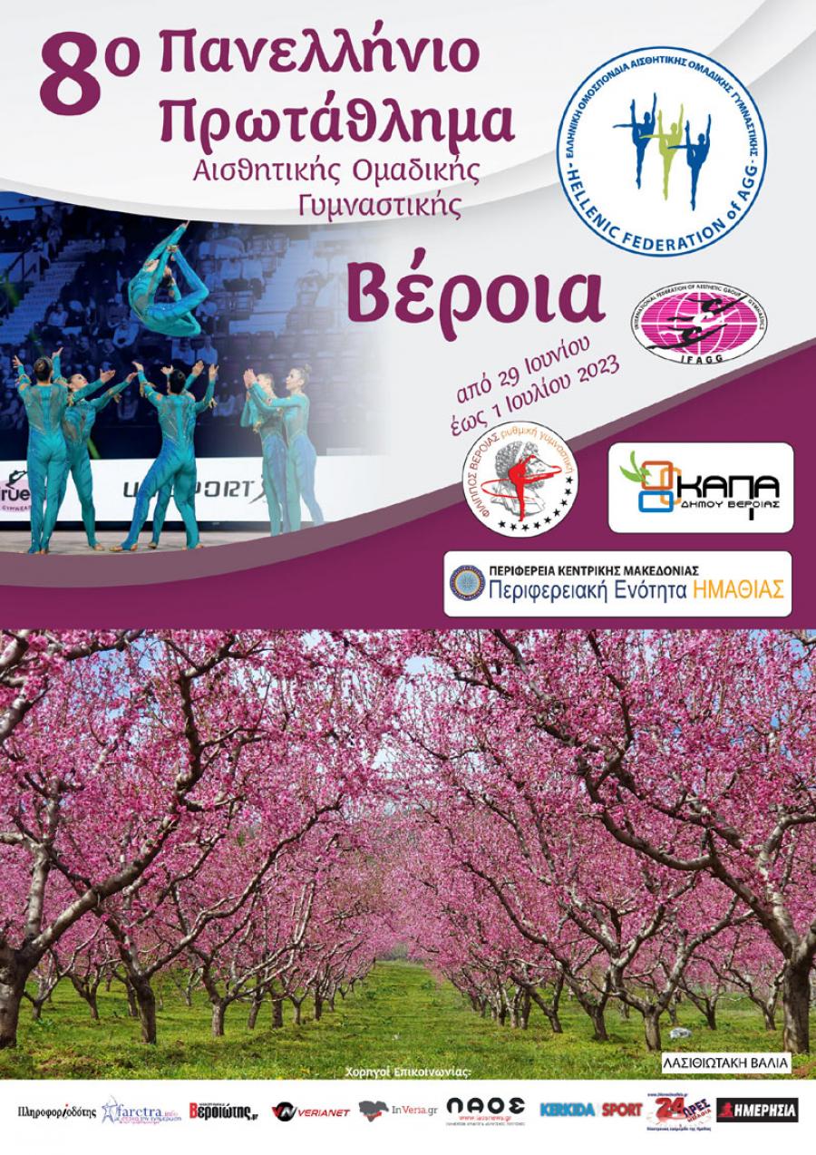 Ο Α.Π.Σ. Φίλιππος Βεροίας & η Ελληνική Ομοσπονδία Αισθητικής Ομαδικής Γυμναστικής σας προσκαλούν στο Πανελλήνιο Πρωτάθλημα Αισθητικής Ομαδικής Γυμναστικής που θα γίνει απο την Πέμπτη 29 Ιουνίου 2023 έως το Σάββατο 1 Ιουλίου 2023 στο Φιλίππειο κλειστό γυμναστήριο στην Βέροια.