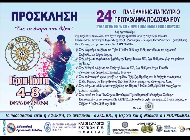 Ξεκινάει την Τρίτη το Πανελλήνιο-Παγκύπριο πρωτάθλημα ποδοσφαίρου δασκάλων στην Ημαθία