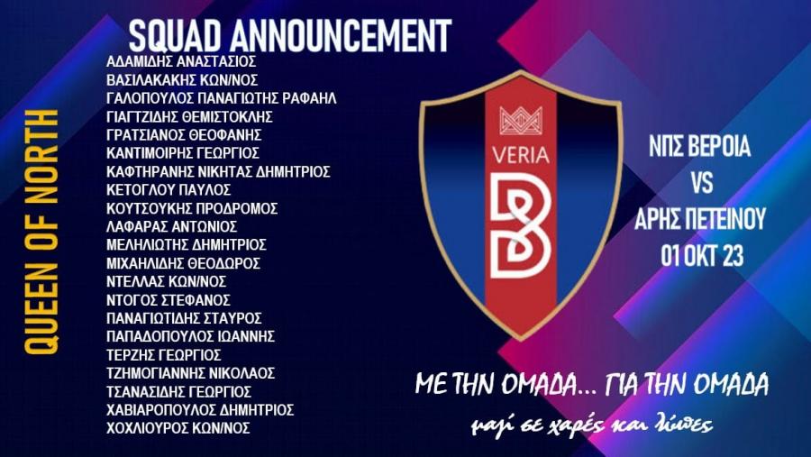 Με τον νεοαποκτηθέντα πριν από δύο μέρες επιθετικό Δημήτρη Μεληκιώτη στην αποστολή της η Βέροια υποδέχεται αύριο Κυριακή στις 4 το απόγευμα τον Άρη Πετεινού. Η ομάδα του Αντώνη Παπατζίκου θα αναζητήσει την πρώτη νίκη στο πρωτάθλημα επί της ουραγού της βαθμολογίας ομάδας της Ξάνθης.