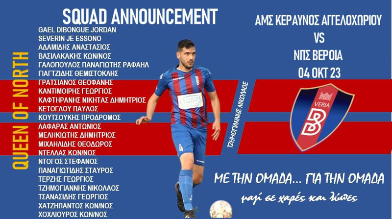 Ενισχυμένη με την ολοκλήρωση δύο καλών μεταγραφών και ενός φέρελπι θα αγωνιστεί αύριο η Βέροια στους Νέους Επιβάτες Θεσσαλονίκης με αντίπαλο το Αγγελοχώρι. Ο Ζε Εσσόνο και ο Τζόρνταν είναι στην διάθεση του Αντώνη προπονητή Παπατζίκου, καθώς επίσης και ο νεαρός επιθετικός Κώστας Χατζηπάντος.