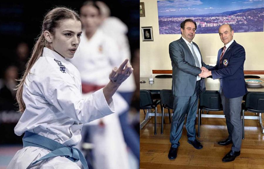 Τη συμπαράστασή του και τις ευχές για καλή επιτυχία δήλωσε ο Δήμαρχος Βέροιας προς την αθλήτρια του Πανημαθιακού Αθλητικού Συλλόγου Καράτε, Σοφία Τσαγερά.