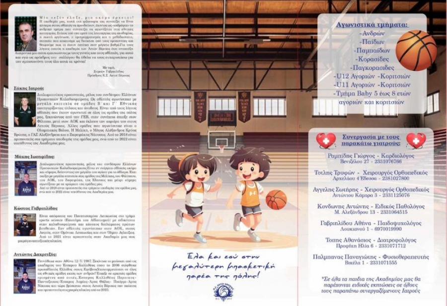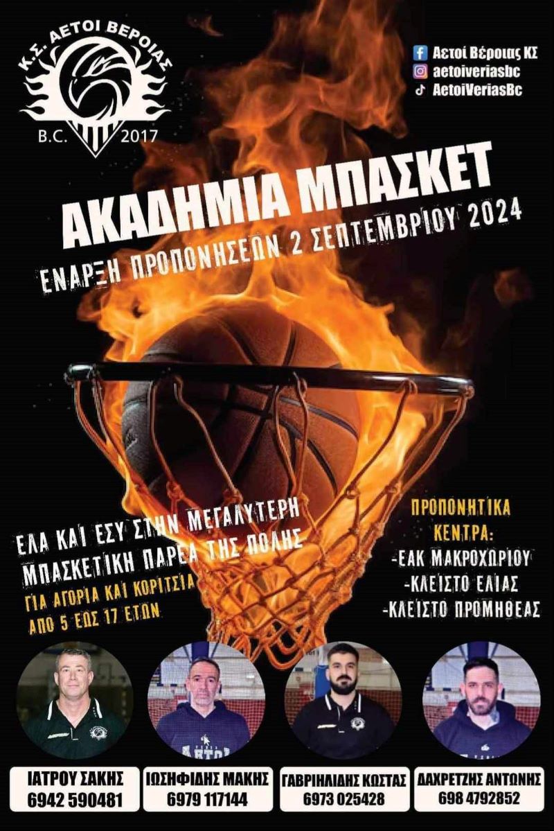 Με μεγάλη χαρά σας ανακοινώνουμε ότι οι εγγραφές για την Ακαδημία Μπάσκετ Κ.Σ. Αετοί Βέροιας έχουν ήδη ξεκινήσει!