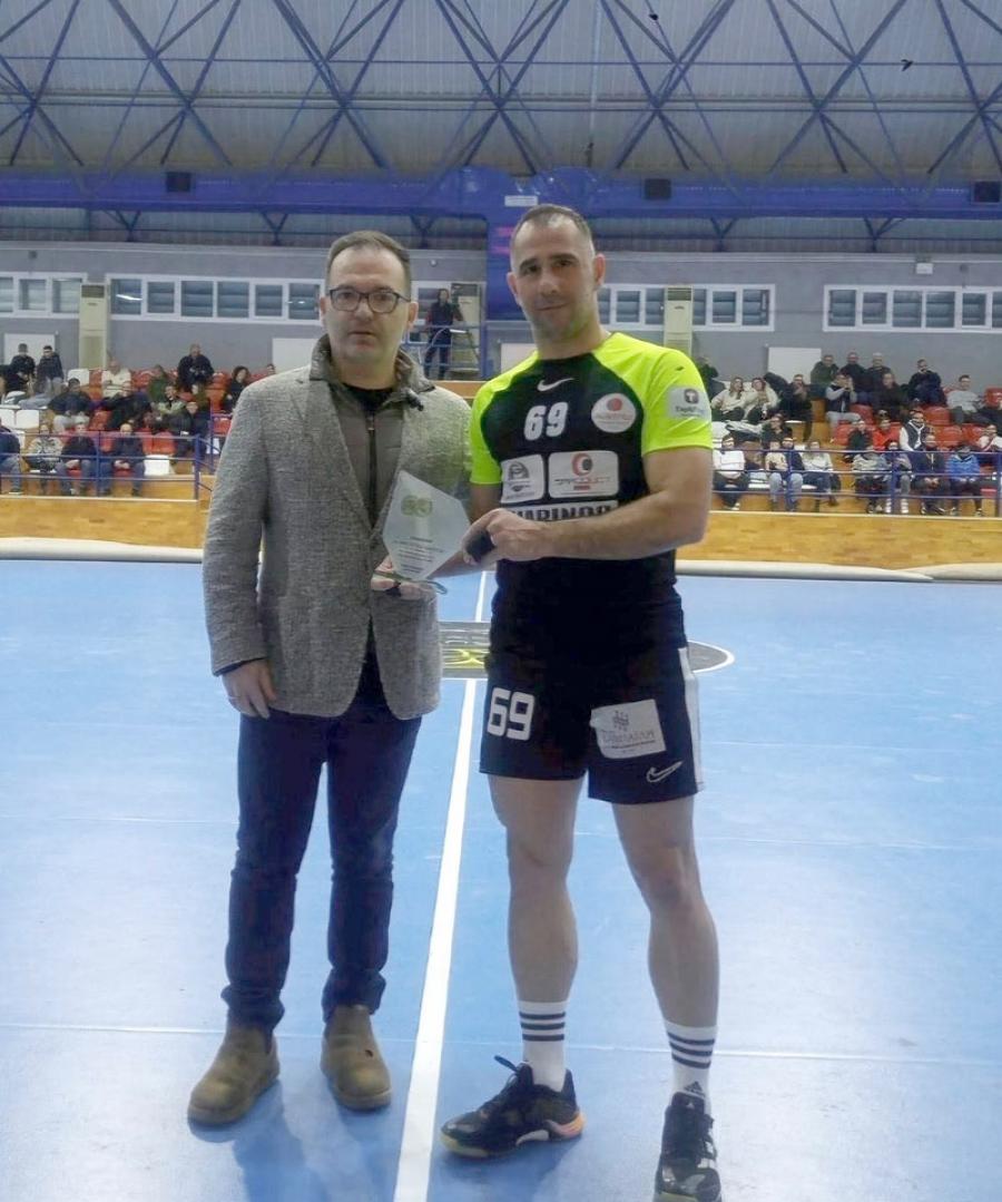 Για τον λόγο αυτό ο Δήμος Βέροιας διά του Αντιδημάρχου Αθλητισμού Μιχάλη Τζαφερόπουλου, το Σάββατο πριν την αναμέτρηση του Φέρωνα Βέροιας με τον Αερωπό Έδεσσας, τον τίμησε απονέμοντάς τον πλακέτα για την προσφορά του στο βεροιώτικο χάντμπολ και το άθλημα γενικότερα.