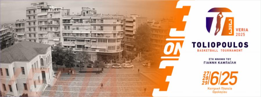 Με αφορμή την εκδήλωση “3on3 Toliopoulos Veria 2025”, η Βέροια θα φιλοξενήσει για 3 ημέρες 120 ομάδες και 400 αθλητές ηλικίας από 8 έως 60 ετών από όλη την Ελλάδα που θα αγωνισθούν στα 2 ανοικτά γήπεδα μπάσκετ, τα οποία θα εγκατασταθούν στην Πλατεία Ωρολογίου και θα τηρούν όλες τις τεχνικές προδιαγραφές της FIBA.